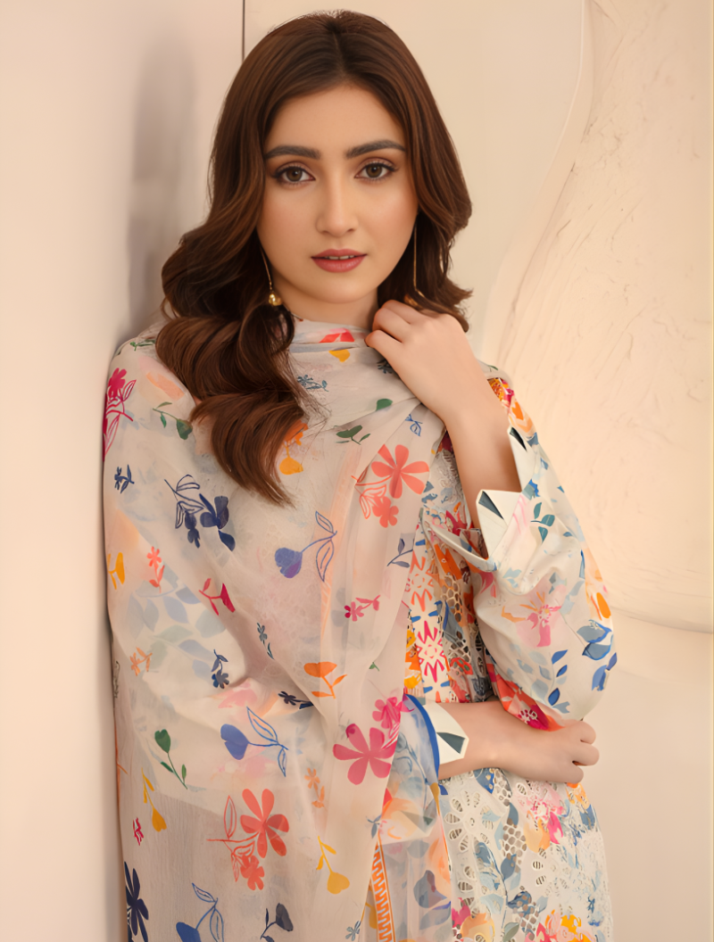 - Premium Embroidered Chikankari Sequence Lawn Shirt