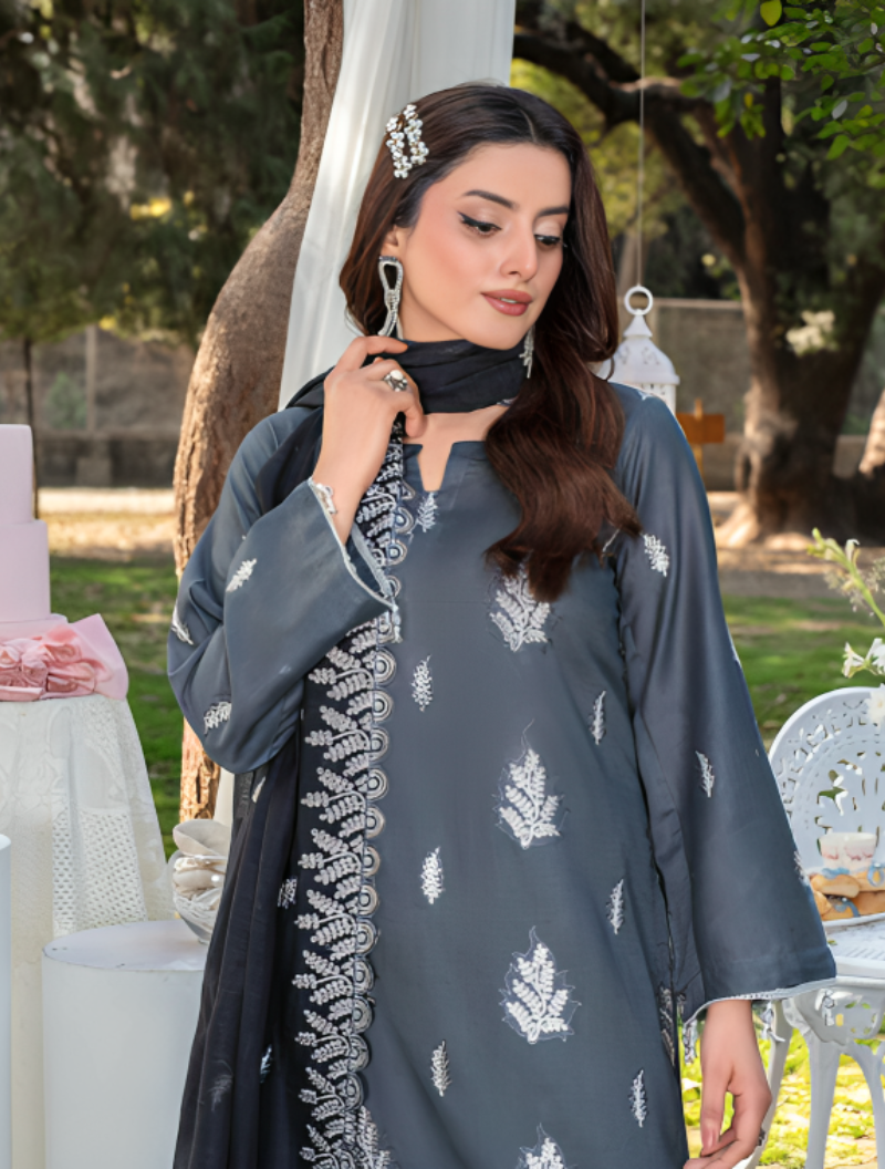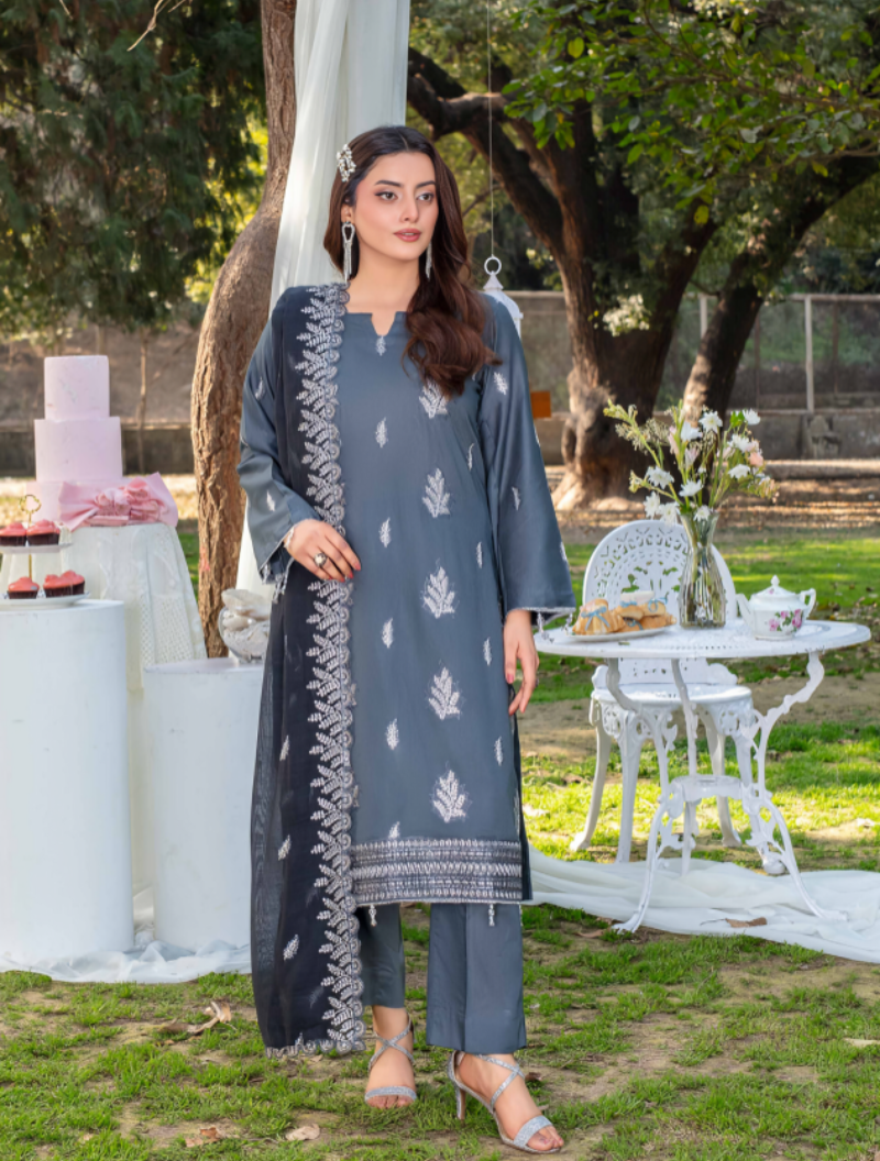 • Dyed Lawn Dobi Embroidered Front